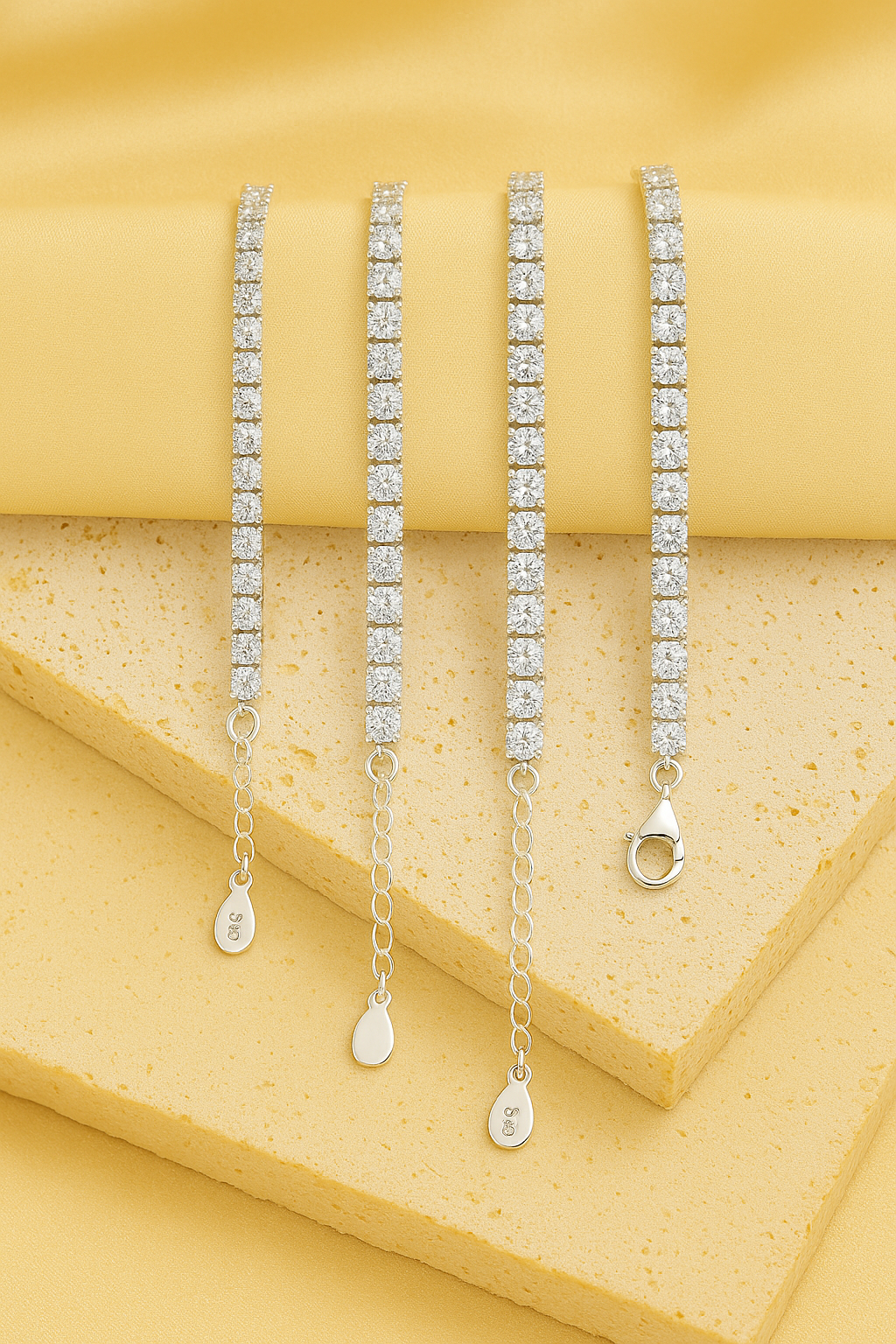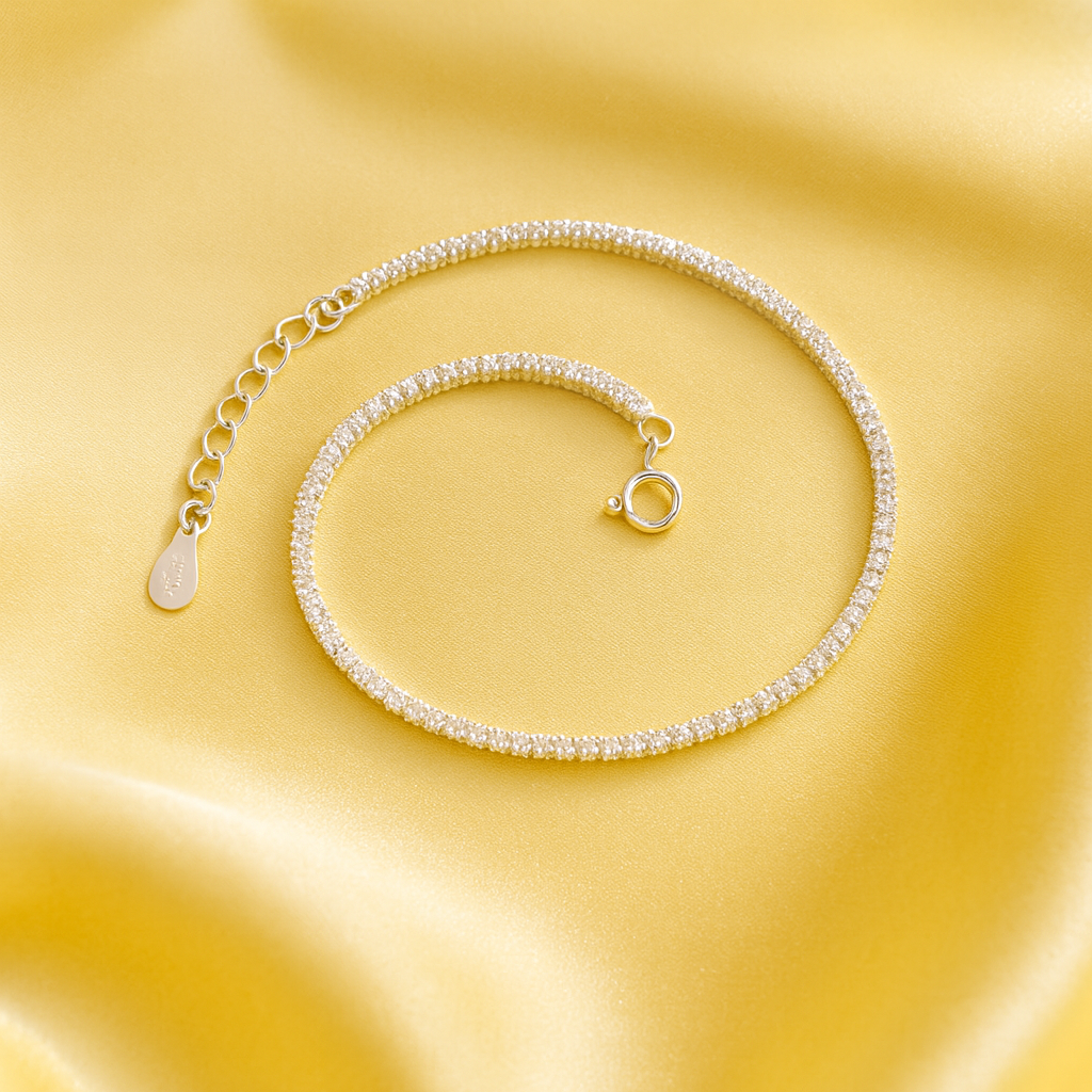 Crafted from genuine 925 sterling silver and available in three stone sizes — delicate 1 mm, graceful 2 mm, and bold 3 mm — this bracelet offers a perfect fit for every mood and occasion. Its timeless design is enhanced by meticulous diamond-inlay detailing, giving it the allure of high jewelry without the weight.