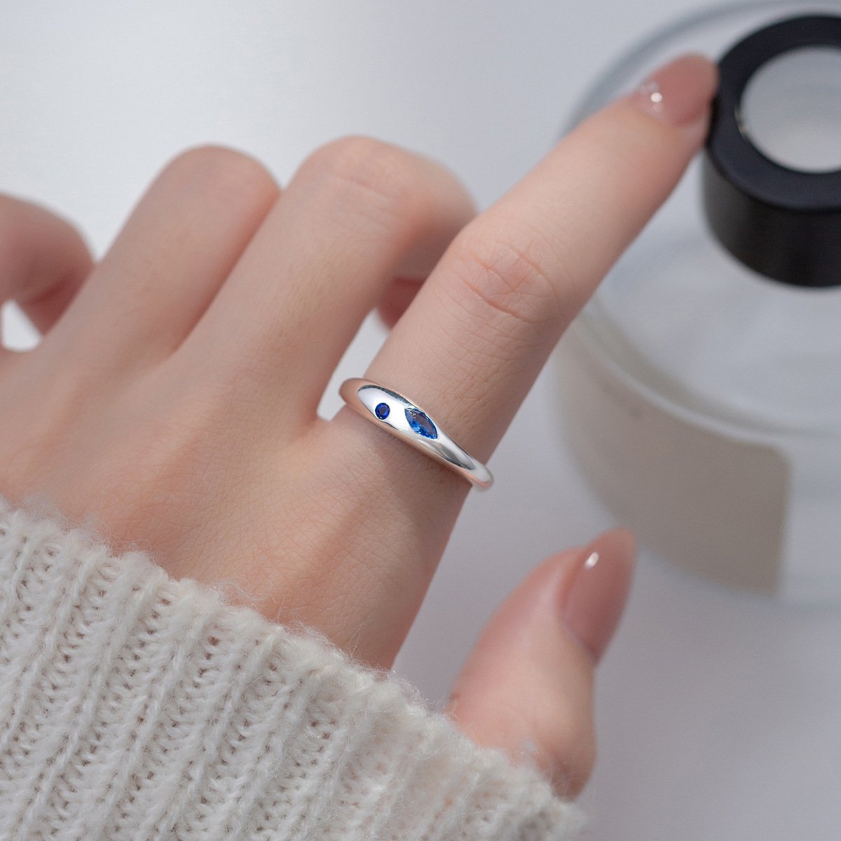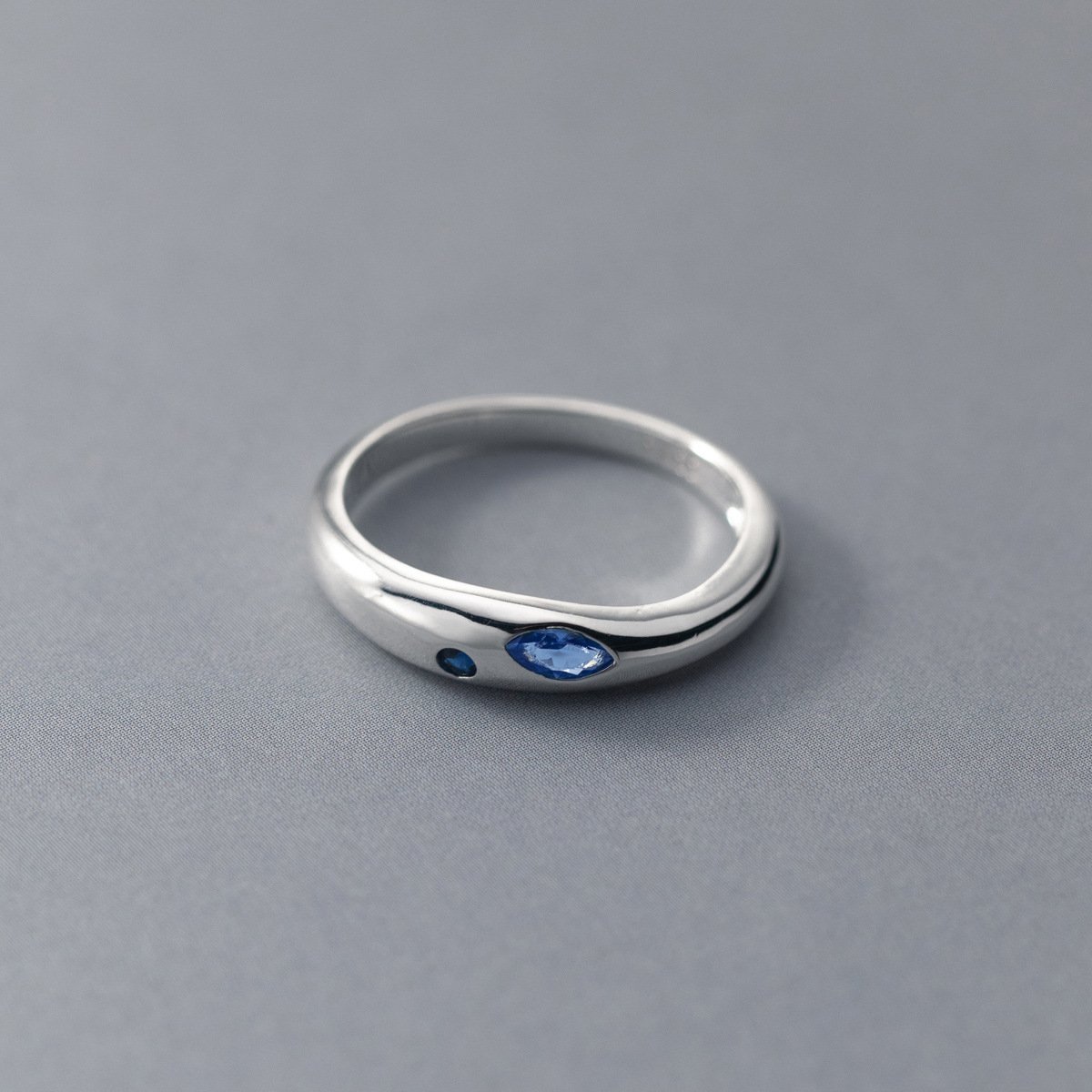 Graceful and captivating, the Larme Céleste ring features a smooth sterling silver band adorned with two deep blue stones, reminiscent of stardrops falling through the night sky. Its elliptical design and glossy finish add a touch of modern elegance while preserving a timeless charm.